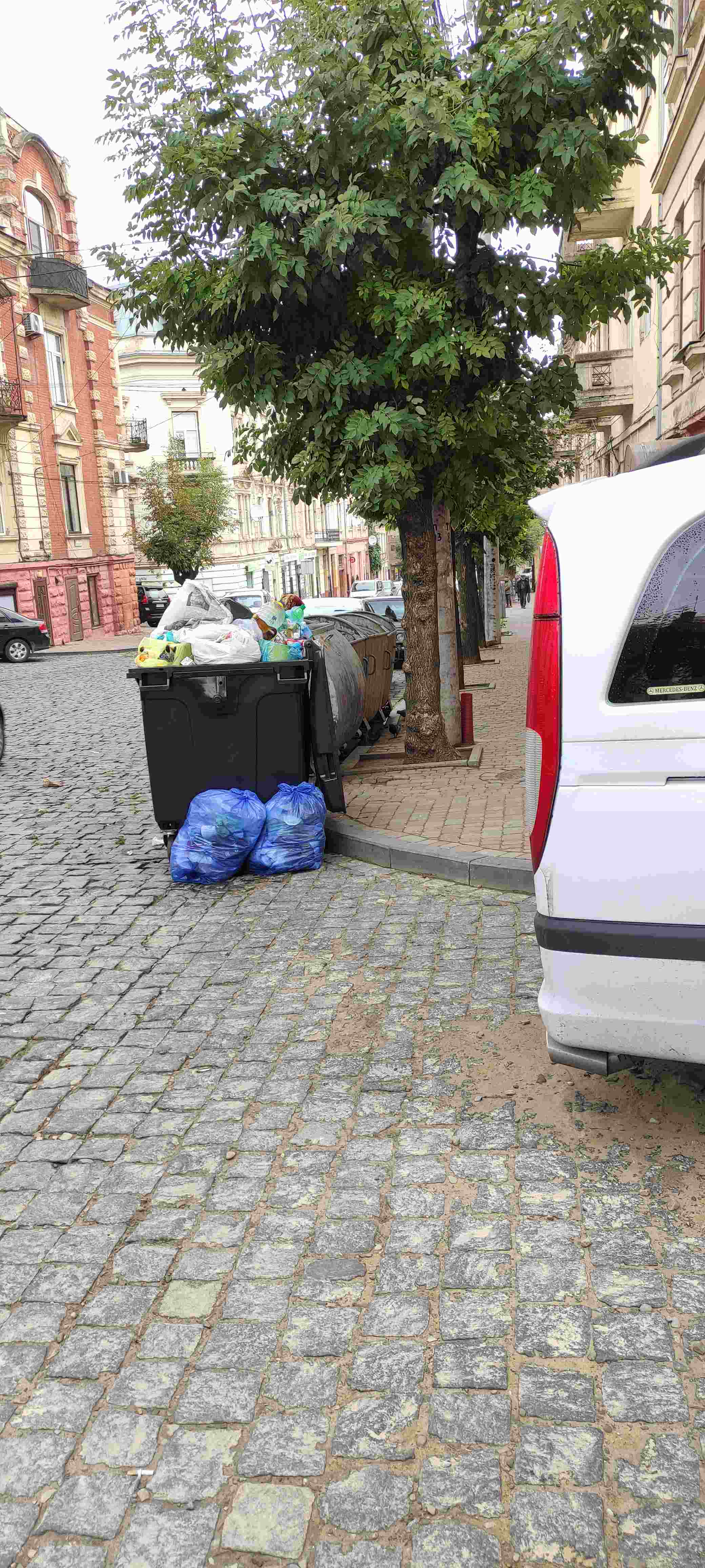 А вот тут вот совсем непонятно - это менталитет, тупость, лень или что? Пустые мусорники и рядом мешки.