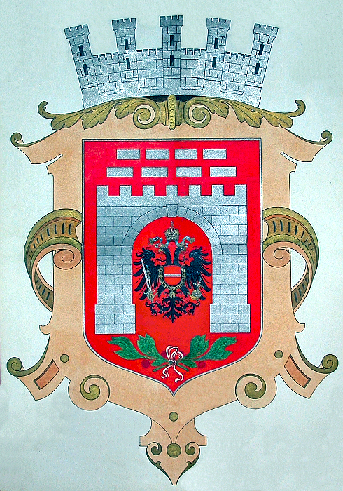 Геральдика міста - радянський період, сучасний, румунський та австрійський.