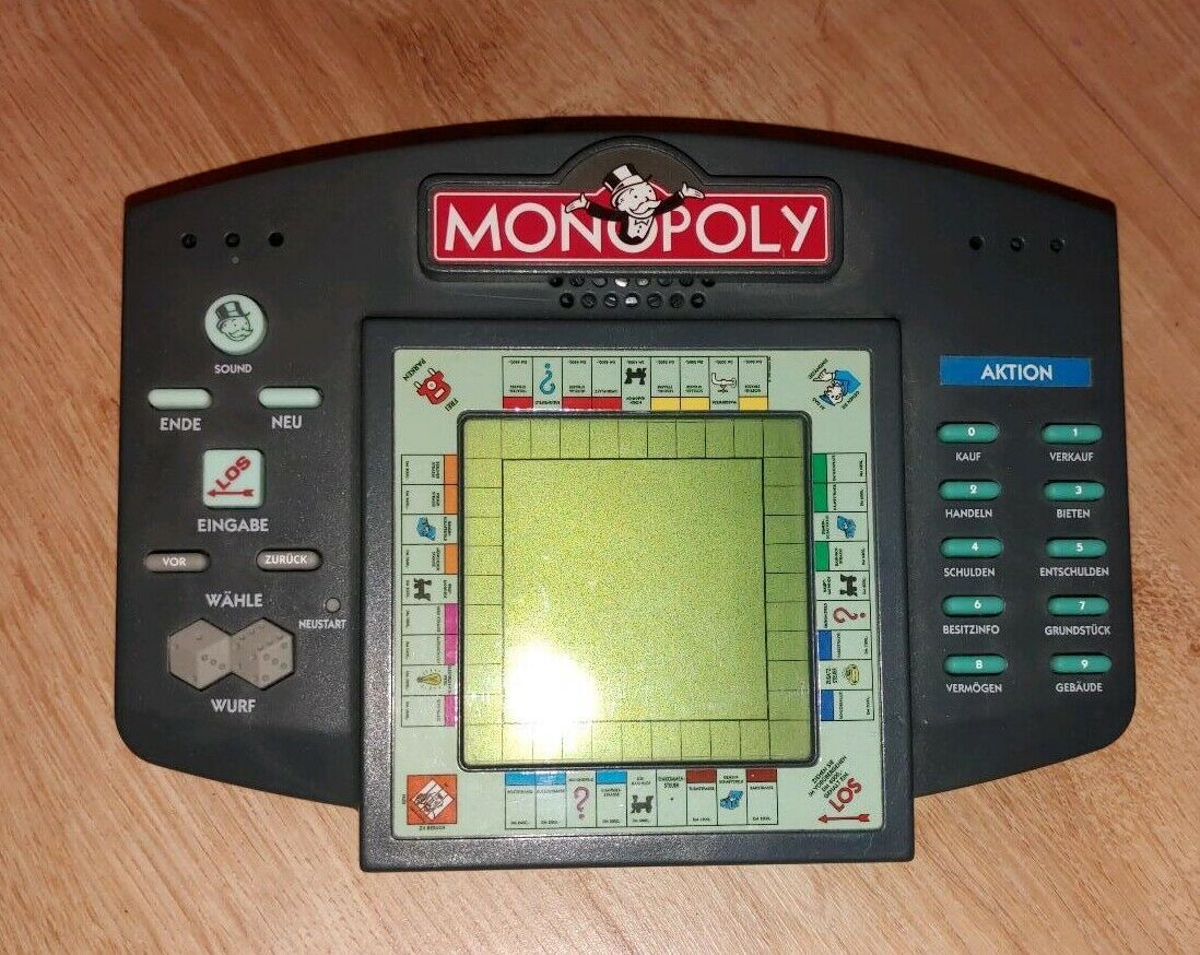 В детстве у меня была довольно редкая в наших краях игрушка - электронная монополия. Выглядела примерно, как тетрис, но большой экранчик, в самой игре вместо улиц были страны. Работала от батареек.