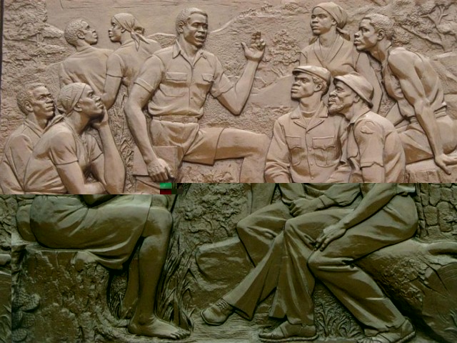 Короче - вглядитесь на фото, оно никак не выказывает национальности, но на нем все негры! пипец, вот просили бы изобразить, я бы не смог, как на монументе без явного чорного цвета показать негроида.