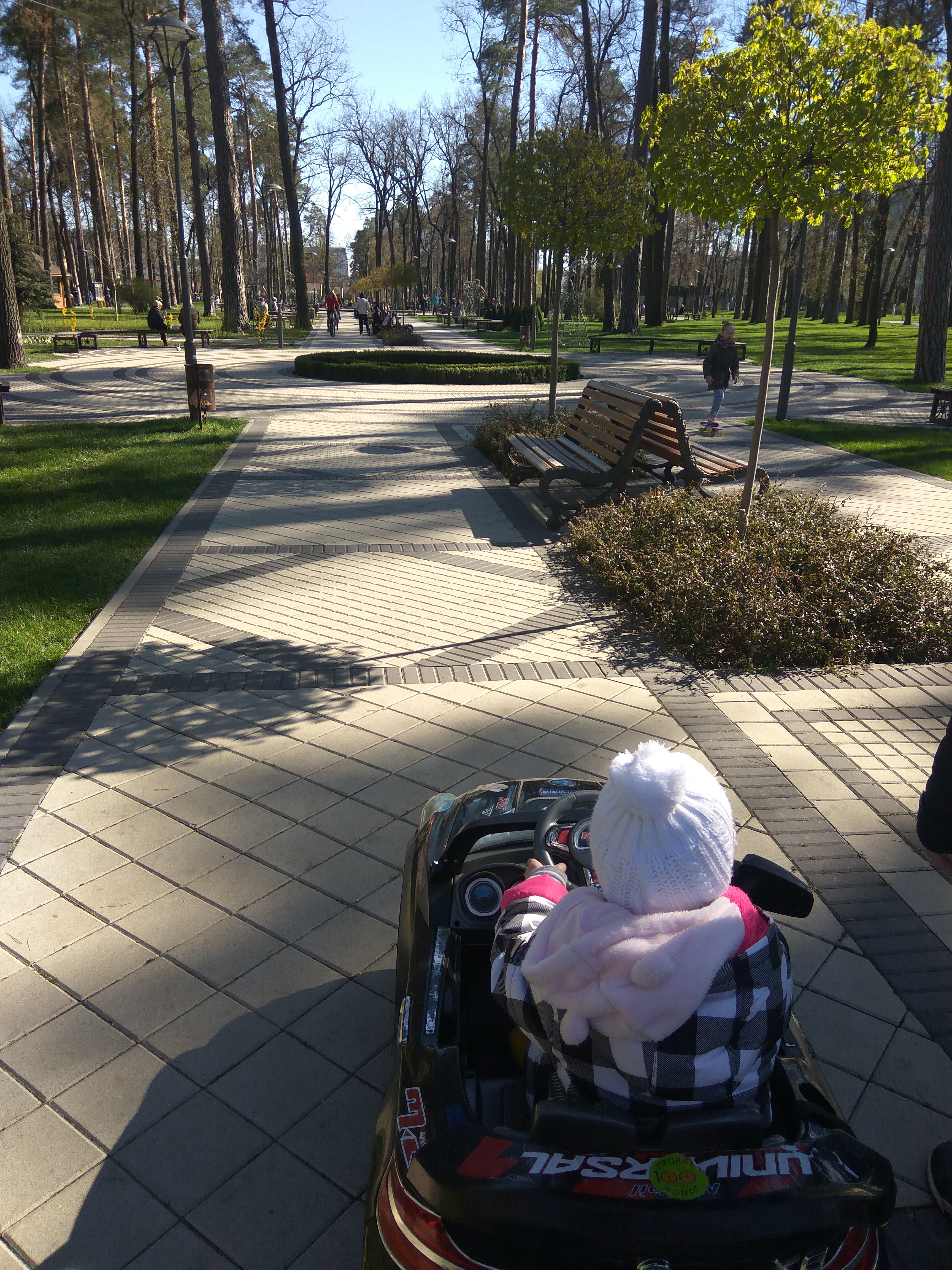 Дорого от дома до основной дороги. Дворы справа, основная дорога слева, а это по сути придомовая територия, но едя по ней я не мешаю пешеходам, плюс для них есть тротуар: По дороге можно отдохнуть, есть лавочки. На первом этаже этих домов всякие магазины, стоматологии, тренажерки, диетически кабинет, кафе, нотариус, парикмахерские, банк, вейп бар. Детский садик: Просто дорога внутри города, не трасса: Водители без галсткуков, но маршрутка не самая старая. Трамвая или троллейбуса в Буче нет. Общественная зона: Вообще огромное количество детских площадок, не только возле новостроек или в парках, а вообще везде. Но не только детских, есть и спортивные, и стадион и футбольные/баскетобольные поля. Возле многих магазинов есть держалки для велосипедов. По самому городу нет вело-дорожек, так чтобы ехать на работу, но они есть в парках и в общественных зонах. Там же есть прокат велосипедов, гиробордов и прочего. Но про парки я напишу отдельно.