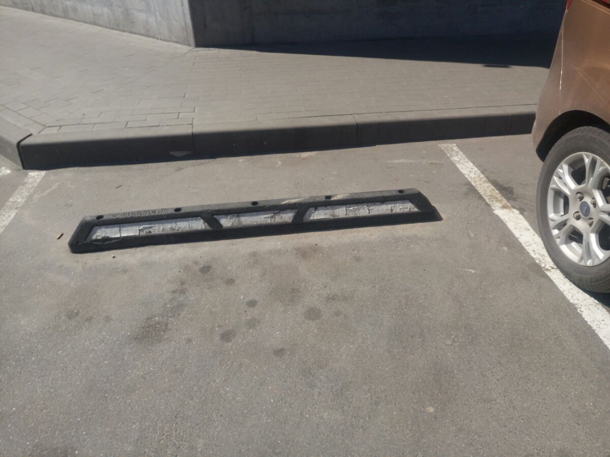 Парковка в Буче: Места таки много, между рядами 2 машины проезжает без проблем: специальные заглушки, чтобы машины не наезжали на бордюр (хотя он и не времен Франца-Иосифа) После парковки мы заходим через двери. А затем обратно выходим из дверей с тележкой. Казалось бы, раздвигающиеся двери придуманы много лет назад, в 80% случаев люди выходят из магазина с тяжелой тележкой или сумками, и им неудобно открывать рукой дверь. Но нет, в Черновцах двери не раздвигающиеся. (Собака на фотке - одна из немногих попавшихся бездомных) Затем мы берем тележку и идем в зал, набирать продуктов. Если вы были в Сильпо в Черновцах, то наверняка помните ужасное состояние тележек. Колеса вечно клинит и тележку ведет в сторону.