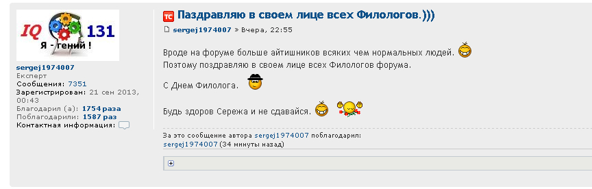 Поэтому поздравляю в своем лице всех Филологов форума.