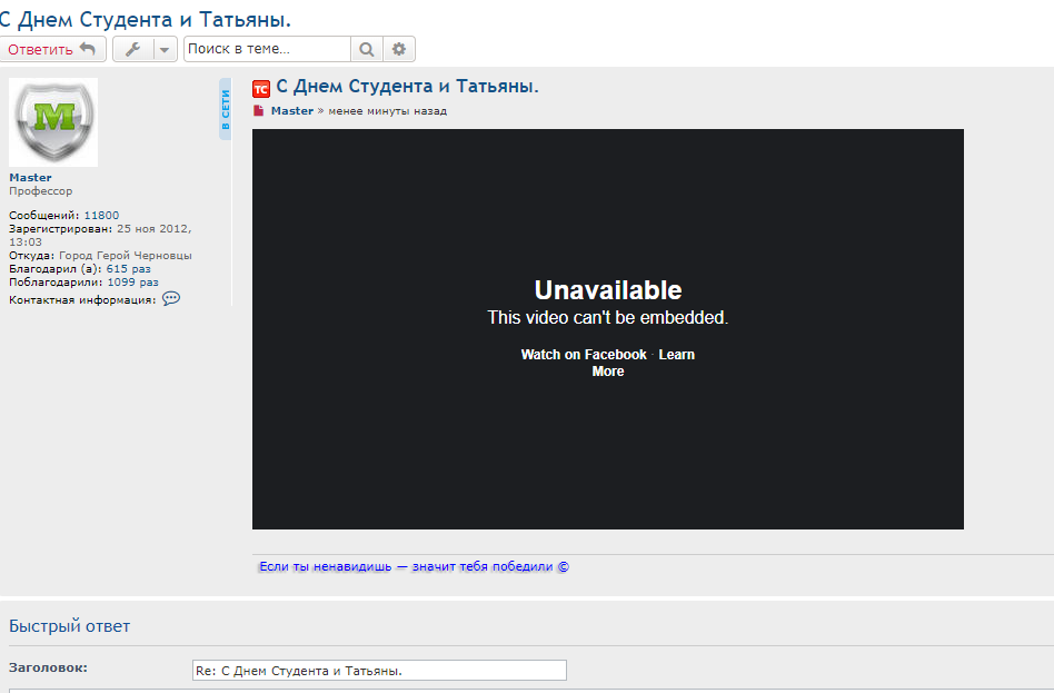 Re: С Днем Студента и Татьяны.