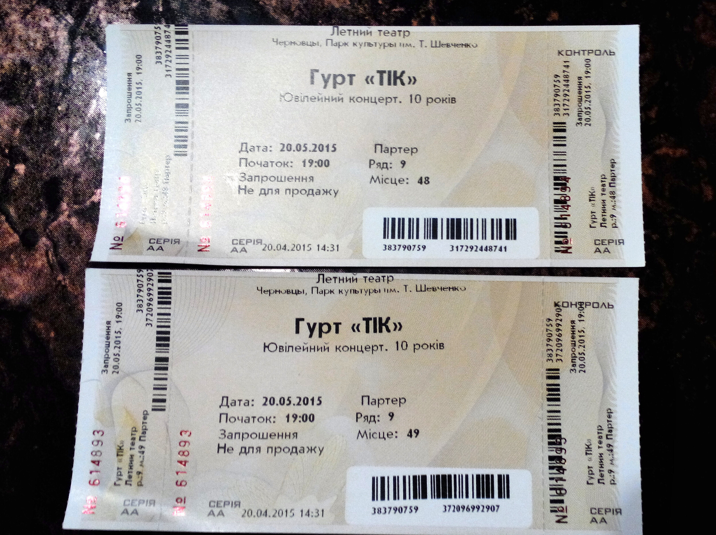 Есть два пригласительных на юбилейный концерт ТІК в Летний театр 20.05.15