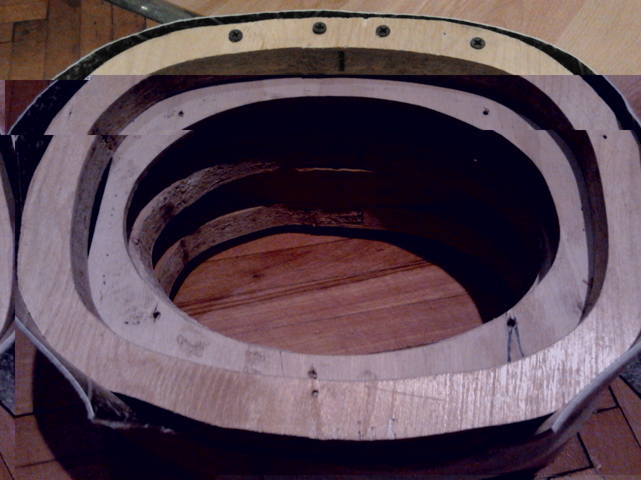 ,открутил,снял,запаял через разъём,захотелось тоже подиумы,но со стекловолокном,эпоксидкой не хотелось возиться.Выпилил по три кольца-яйца на каждый динамик,скрутил,оббил линолиумом внутри,по наруже,потом без клея карпетом обтянул,прикрутил обратно,в принципе можна и без сабвуфера