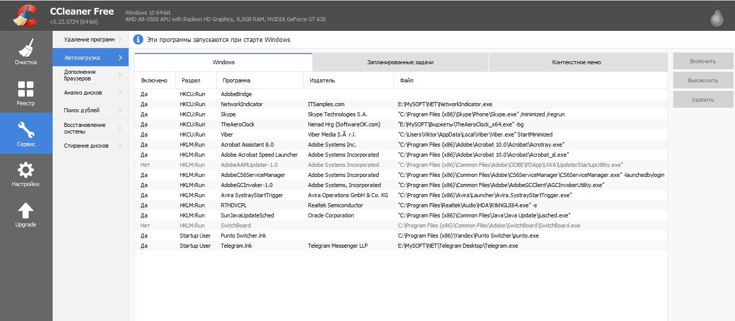Сиклинером можно быстро проверить автозагрузку и запланированные задачи