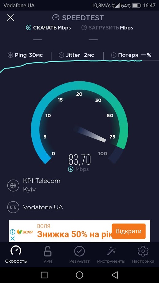 Скорость 4G в городе