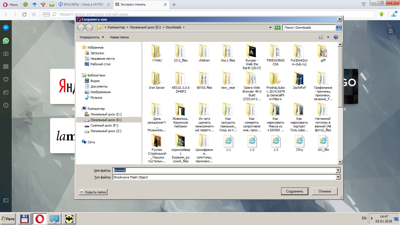 А вот открыть сам swf файлик c компа не возможна. При открытии его опера только его спрашивает сохранить.