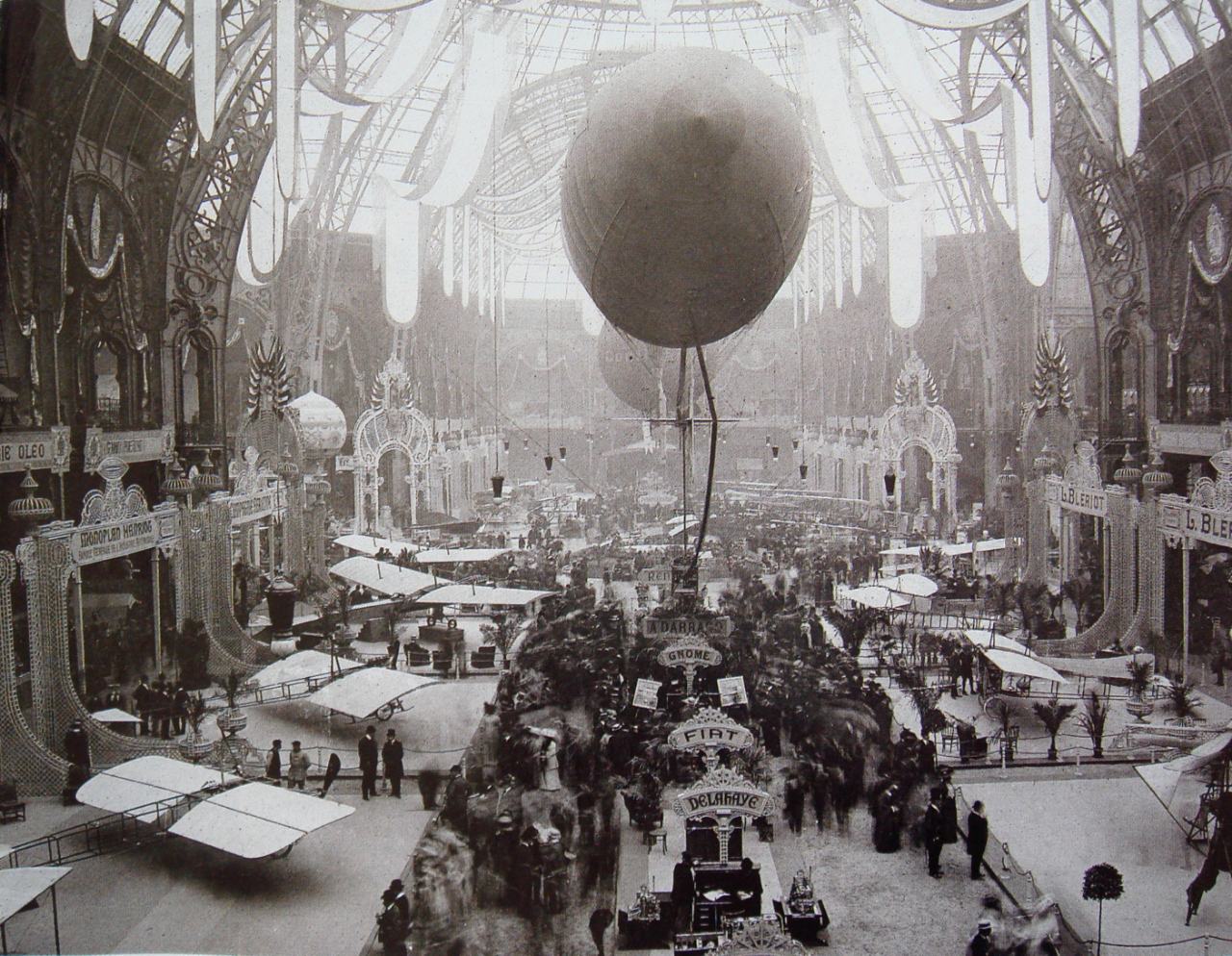 Первая в мире выставка, целиком посвященная авиации и воздухоплаванию, предшественник всемирно знаменитых авиасалонов в Ле Бурже. Гран-Пале, Париж, Франция, 25 сентября 1909 года.