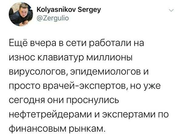 твое мнение имеет право на существование, но оно не соответствует действительности и я с ним не согласенHunter писав: ↑10 березня 2020, 13:15ухахахахахахахахахахахаха! И уже были прецеденты, когда рубль возвращался на свои позиции? Может ещё и АвтоВАЗ выкупят у Alliance Rostec Auto B.V, да? Какой же бред несёт этот представитель старшего поколения и просто совкофил)))телефонист писав: ↑10 березня 2020, 07:04