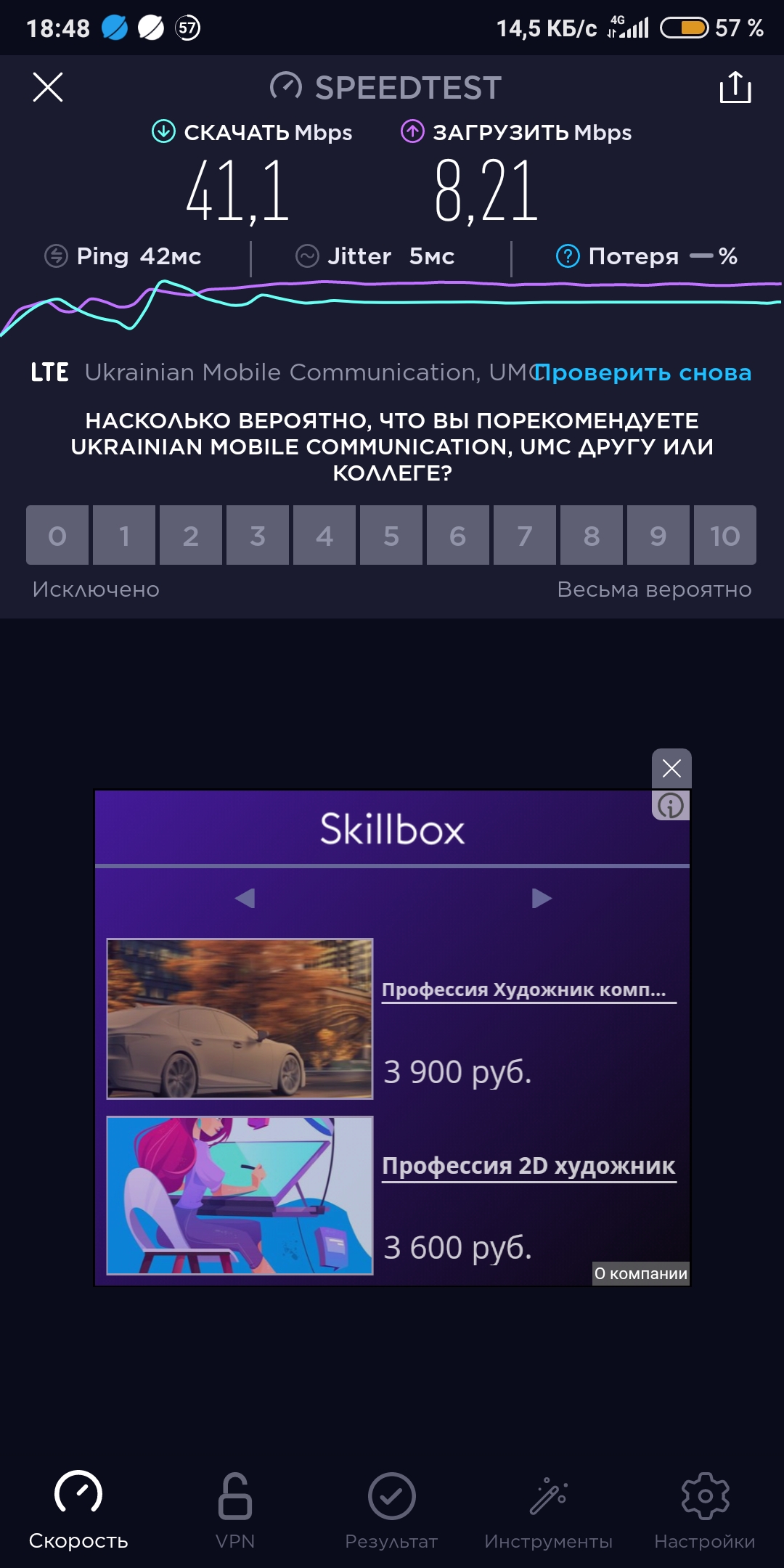 Середня швидкість мобільного інтернету в Україні має бути щонайменше 2 Мбіт/сек. Цього мінімально достатньо, щоб зумитися з колегами зі смартфона в дорозі. Чи публікувати відео в інстаграм та обмінюватися файлами без Wi-Fi.