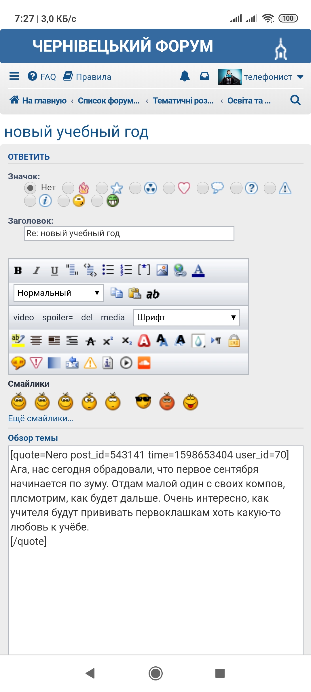 Собственно, при просмотре темы "новый учебный год" нету окна быстрого ответа