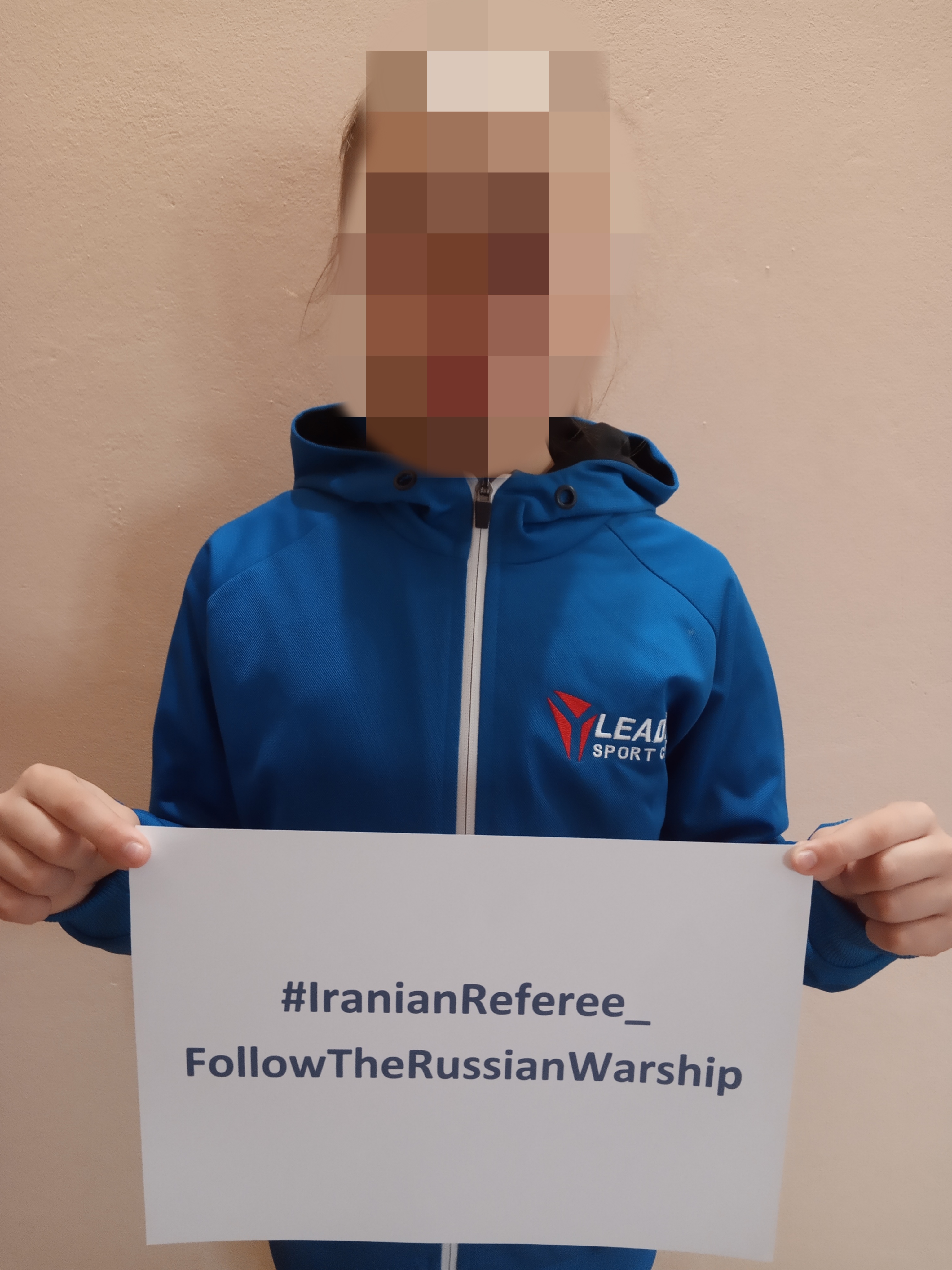 «Iranian judge - follow the Russian warship» - якось так. Українською правильно говорити не руський корабль, а російський. Росіяни до Русі не мають нічого.