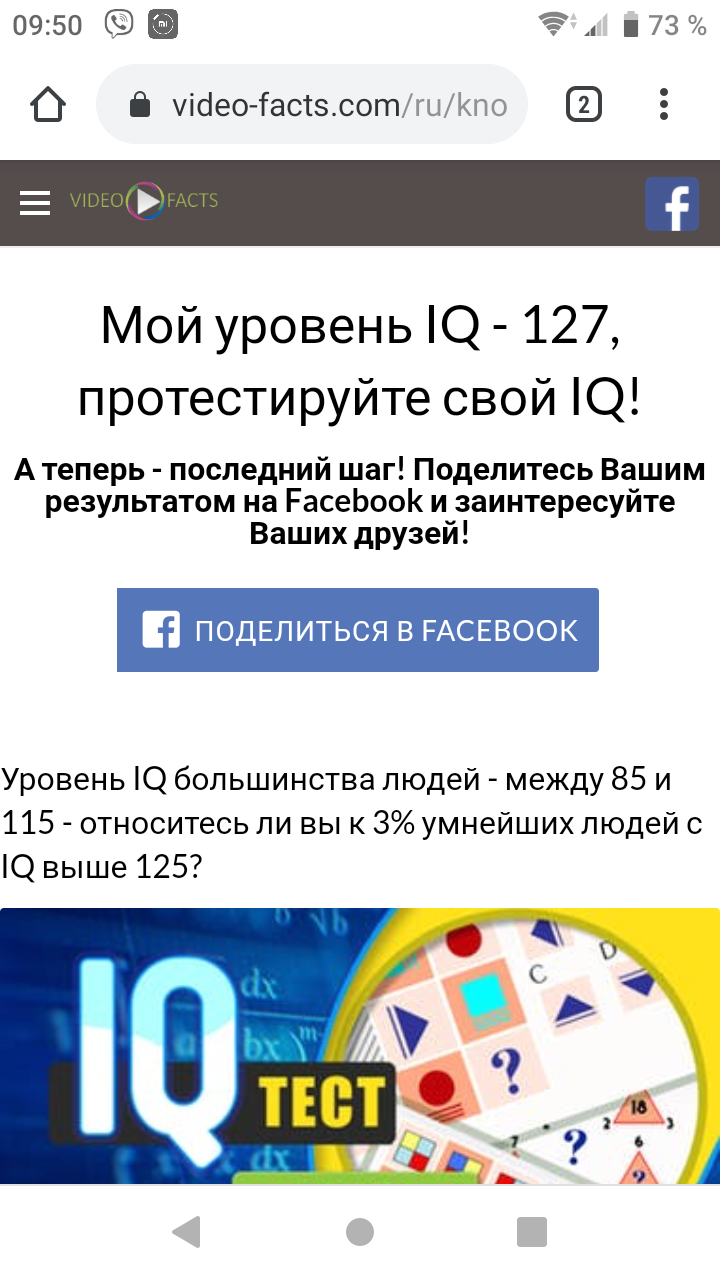 Дуже простий та примітивний тест. Відповів на 59/60 і результат 130. Один мені здається десь промахнувся коли тикав на телефоні. І це ввечері дивлячись ще серіал по телевізору. Коротше туфта повна.