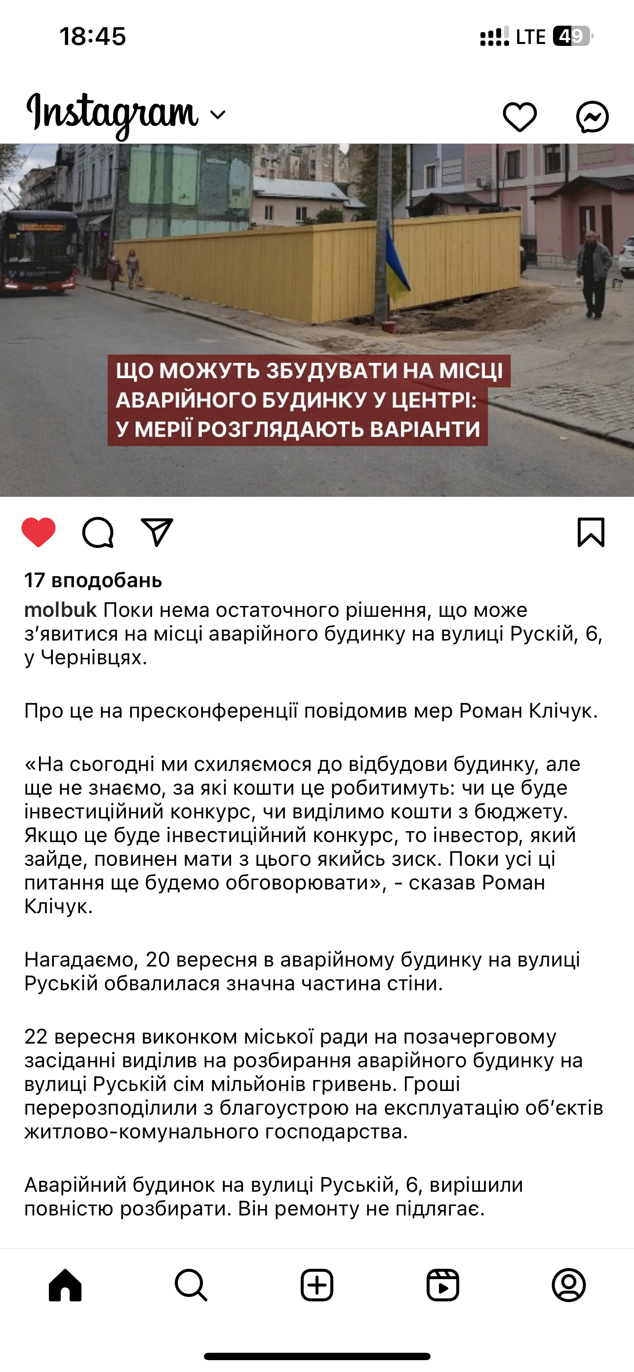 Re: В центре Черновцов рухнула стена дома (Руская, 6). Переговоры с мером, расселение жителей дома